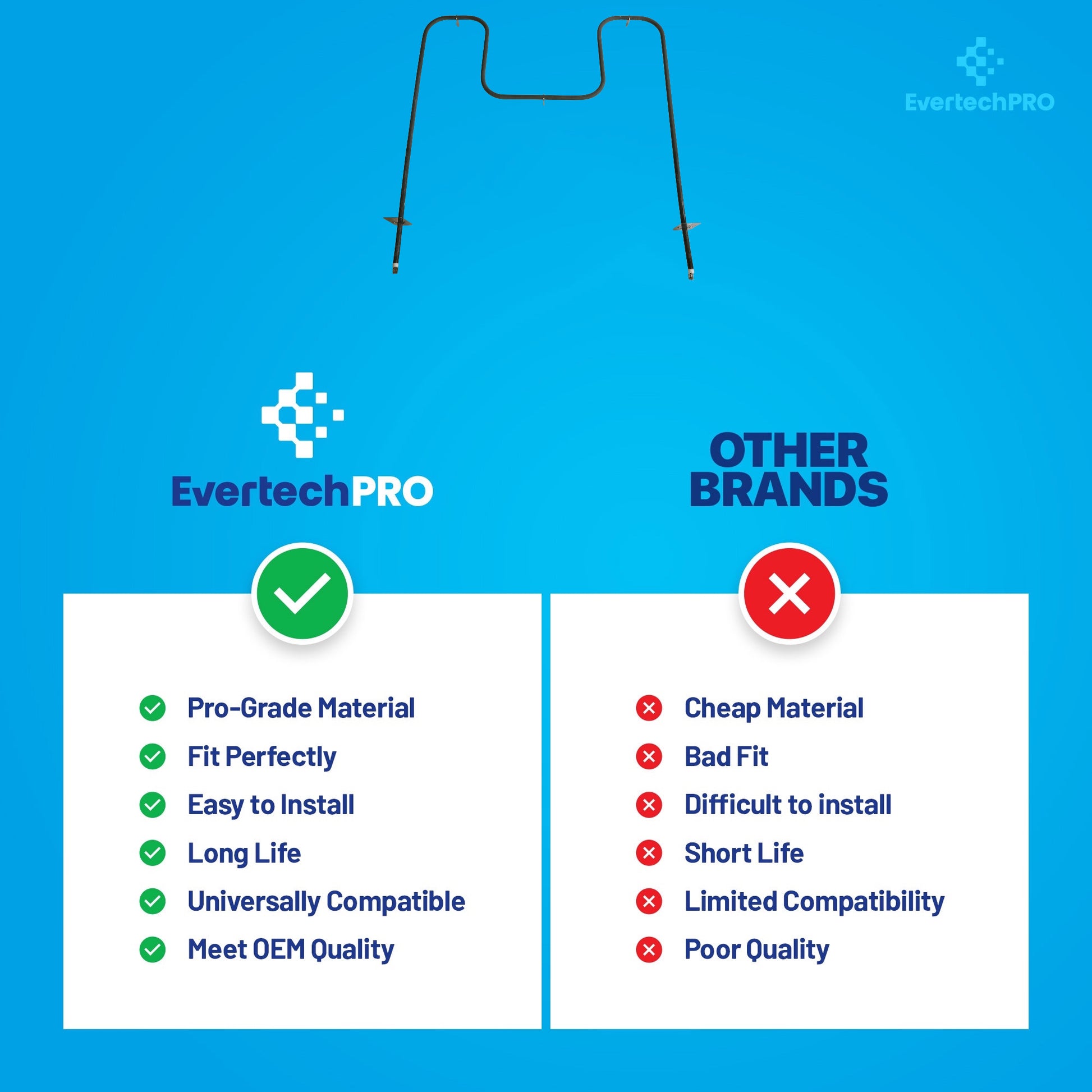 The EvertechPRO 74010750 / 7406P425-60 Oven Bake Heating Element is a premium-quality replacement designed to restore reliable and even heating in Whirlpool- and Maytag-manufactured electric ranges. A failing bake element often causes uneven cooking, long preheat times, or a completely non-heating oven. This replacement element delivers 2800 watts of consistent power at 240 volts, ensuring dependable baking performance across the entire oven cavity. Built with heavy-duty, high-temperature resistant materials, this element is engineered for long service life and repeated heating cycles. OEM-style 1/4-inch push-on terminals and precise dimensions ensure easy installation without modifications. Whether you’re a professional technician or a DIY homeowner, EvertechPRO provides a reliable, cost-effective solution to get your oven back to optimal working condition.