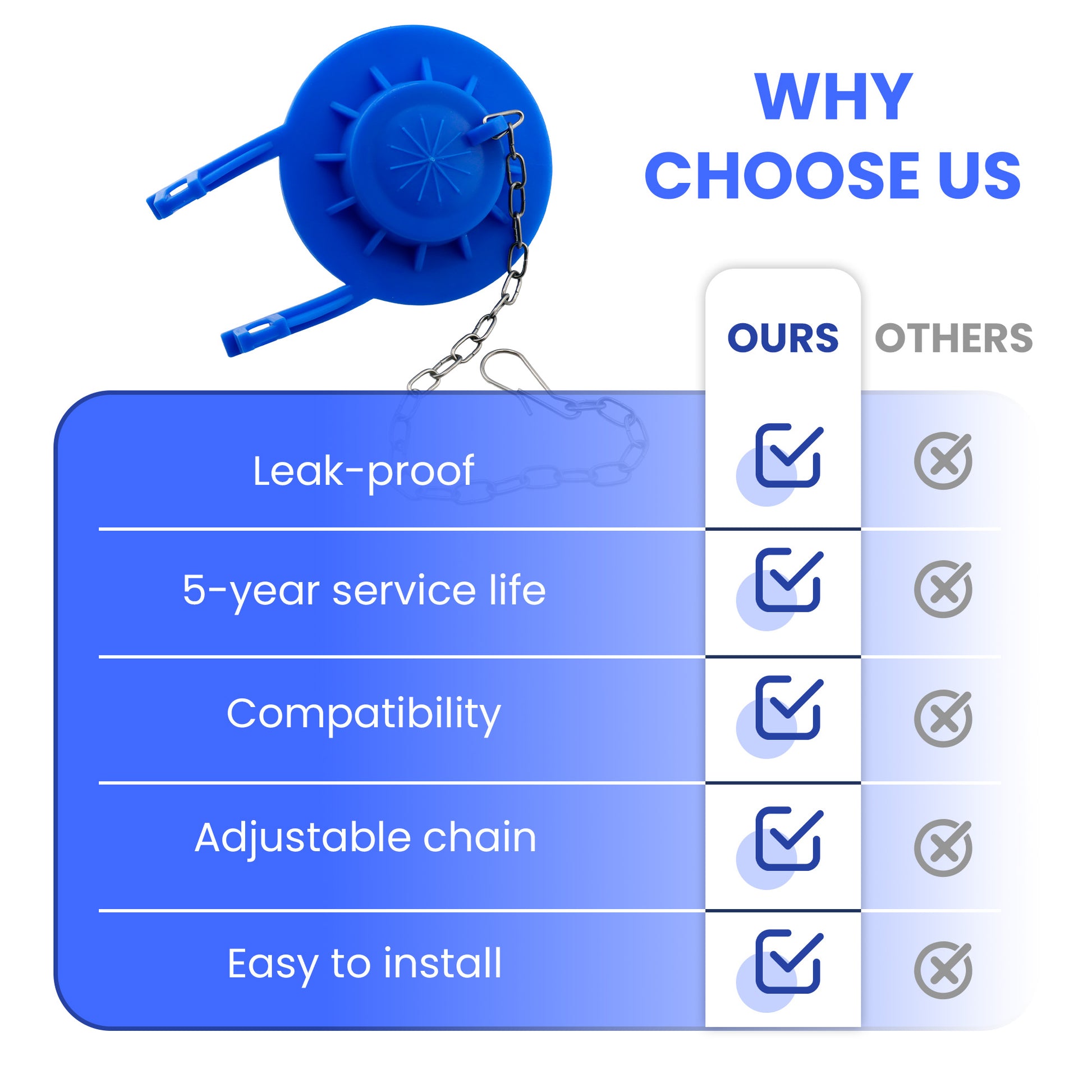 The EvertechPRO 2-Inch Toilet Flapper Replacement is the perfect solution for fixing leaky toilets and restoring efficient flushing. Made from high-quality silicone with a secure stainless steel chain, it ensures a leak-proof seal and long-lasting durability. Compatible with most standard 2-inch flush valves, including popular brands like American Standard, Kohler, Toto, and AquaSource. Easy to install in just minutes without tools or plumbers – simply replace your old flapper and enjoy a reliable, water-saving seal. Trust EvertechPRO for dependable home repair parts that keep your fixtures running like new.