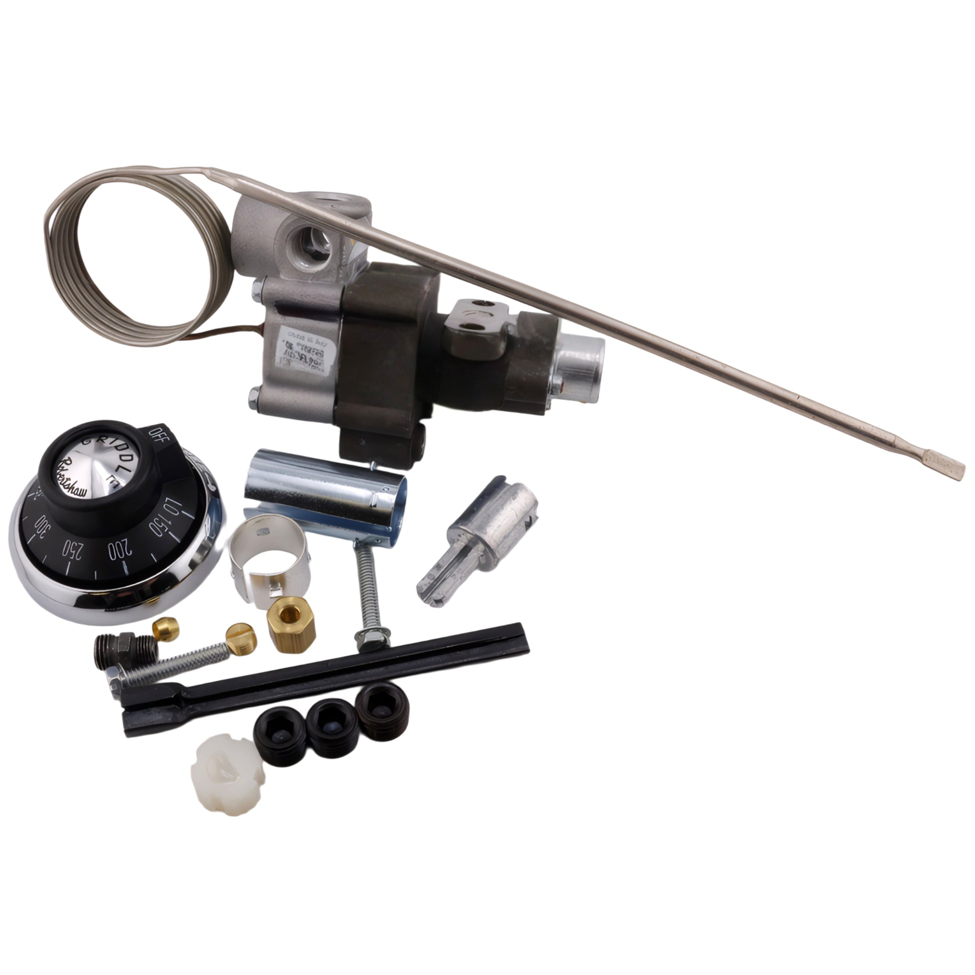 This gas cooking control thermostat kit compatible with part number 4350-028 is designed for use in commercial gas griddles where accurate and stable temperature control is essential. The thermostat regulates gas flow to maintain consistent griddle surface temperatures, helping ensure even cooking and dependable performance in high-volume food service environments. Ideal for restaurants, cafés, diners, and food trucks, this replacement thermostat kit helps restore proper operation when the original control becomes worn, inaccurate, or fails altogether. Built for commercial durability, it is suitable for continuous daily use.