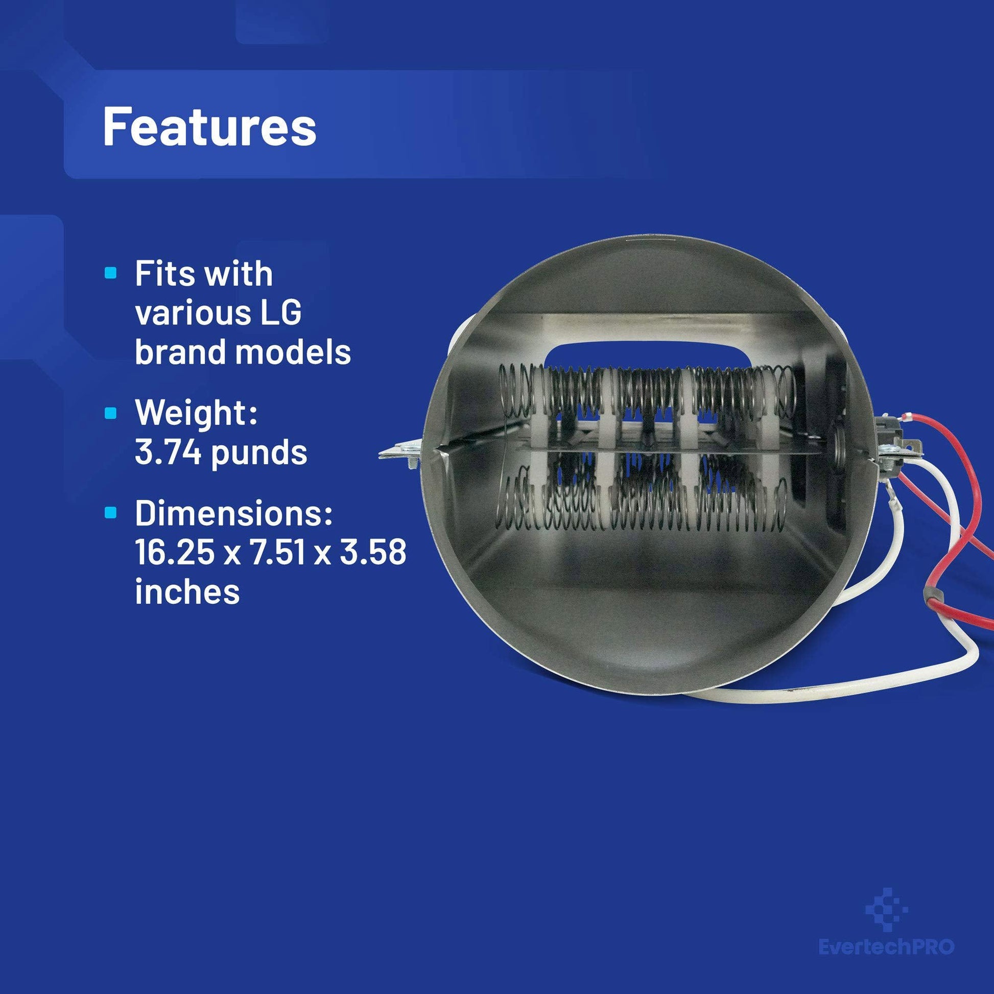 EvertechPRO Appliance Replacement Heater Assembly Part Number 5301EL1001J replaces 5301EL1001A 5301EL1001U 1377645 5301EL1001E 5301EL1001G AH3527791 EA3527791 PS3527791This is not a LG OEM product. Fits LG Appliance. Use of the Manufacturers...