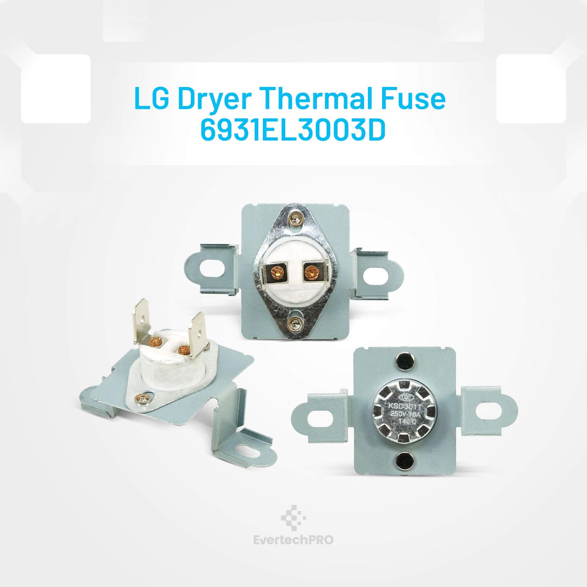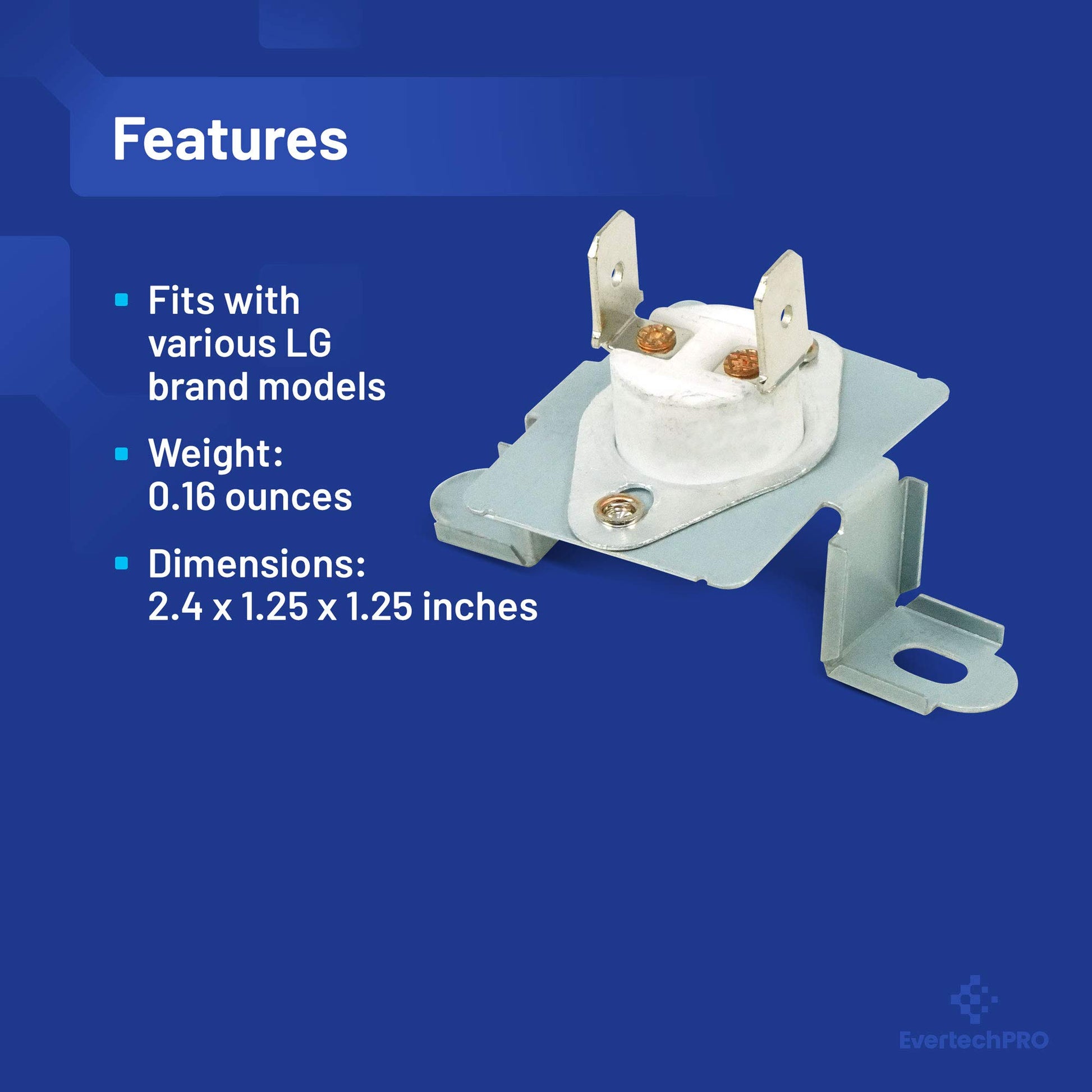 EvertechPRO Dryer Replacement Hi-Limit Thermostat Part Number 6931EL3003D replaces 1268366 AH3530485 EA3530485 PS3530485This is not a LG OEM product. Fits LG Dryer. Use of the Manufacturers trade names and logos...