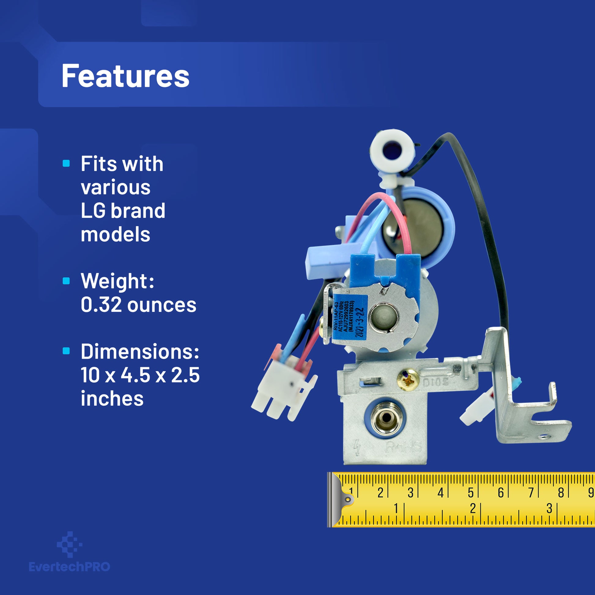 The EvertechPRO AJU72992603 AJU72992603 Water Inlet Valve Assembly is a genuine replacement part designed specifically for LG refrigerators. This crucial component regulates the flow of water into your refrigerator, ensuring a steady supply for ice makers and water dispensers. Crafted with precision and durability in mind, this valve assembly promises reliable performance and longevity. Its seamless integration with your LG refrigerator ensures optimal functionality, preventing leaks and maintaining water pressure. Upgrade your refrigerator's water supply system with the EvertechPRO AJU72992603 and enjoy a hassle-free experience. Easy to install, this genuine part ensures your LG refrigerator operates at its best.