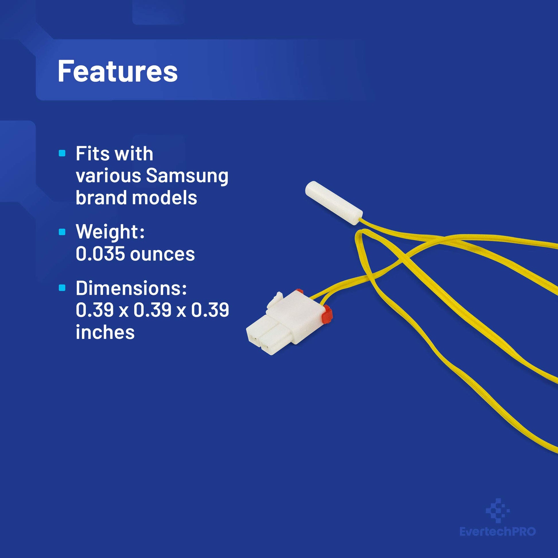EvertechPRO Refrigerator Replacement Defrost Temperature Sensor Part Number DA32-10105R replaces DA32-00006W DA32-00006U DA32-00006B DA32-00006C DA32-00006D DA32-00006L DA32-00006M DA32-00006T DA32-00006VThis is not a Samsung OEM product. Fits Samsung Refrigerator. Compatible with...