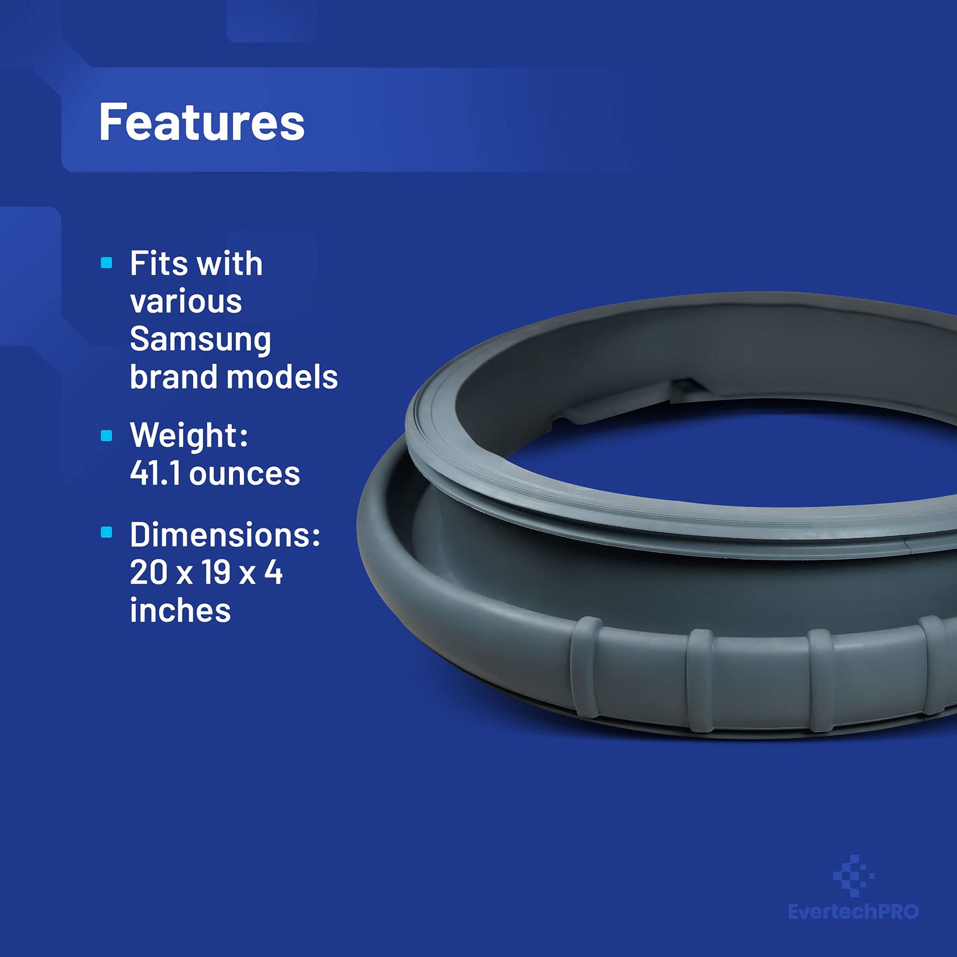 EvertechPRO Appliance Replacement Door Boot Seal Part Number DC64-00802A replaces 2071561This is not a Samsung OEM product. Fits Samsung Appliance. Compatible with WF306BHW WF306BHW/XAA WF306LAW WF306LAW/XAA WF316BAC WF316BAC/XAA WF316BAW WF316BAW/XAA...