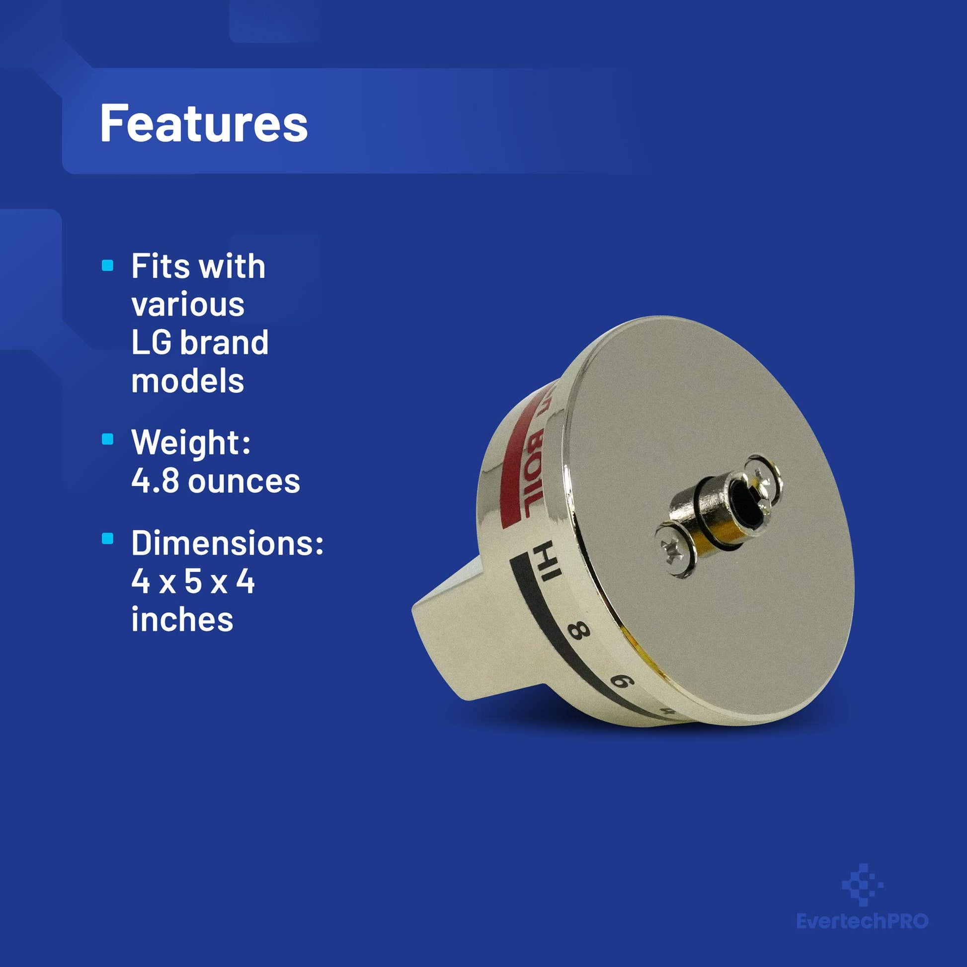 EvertechPRO Range Replacement Top Burner Control Knob Part Number EBZ37189609 replaces 1463914 AH3534128 EA3534128 EBZ37189602 PS3534128This is not a LG OEM product. Fits LG Range. Use of the Manufacturers trade...