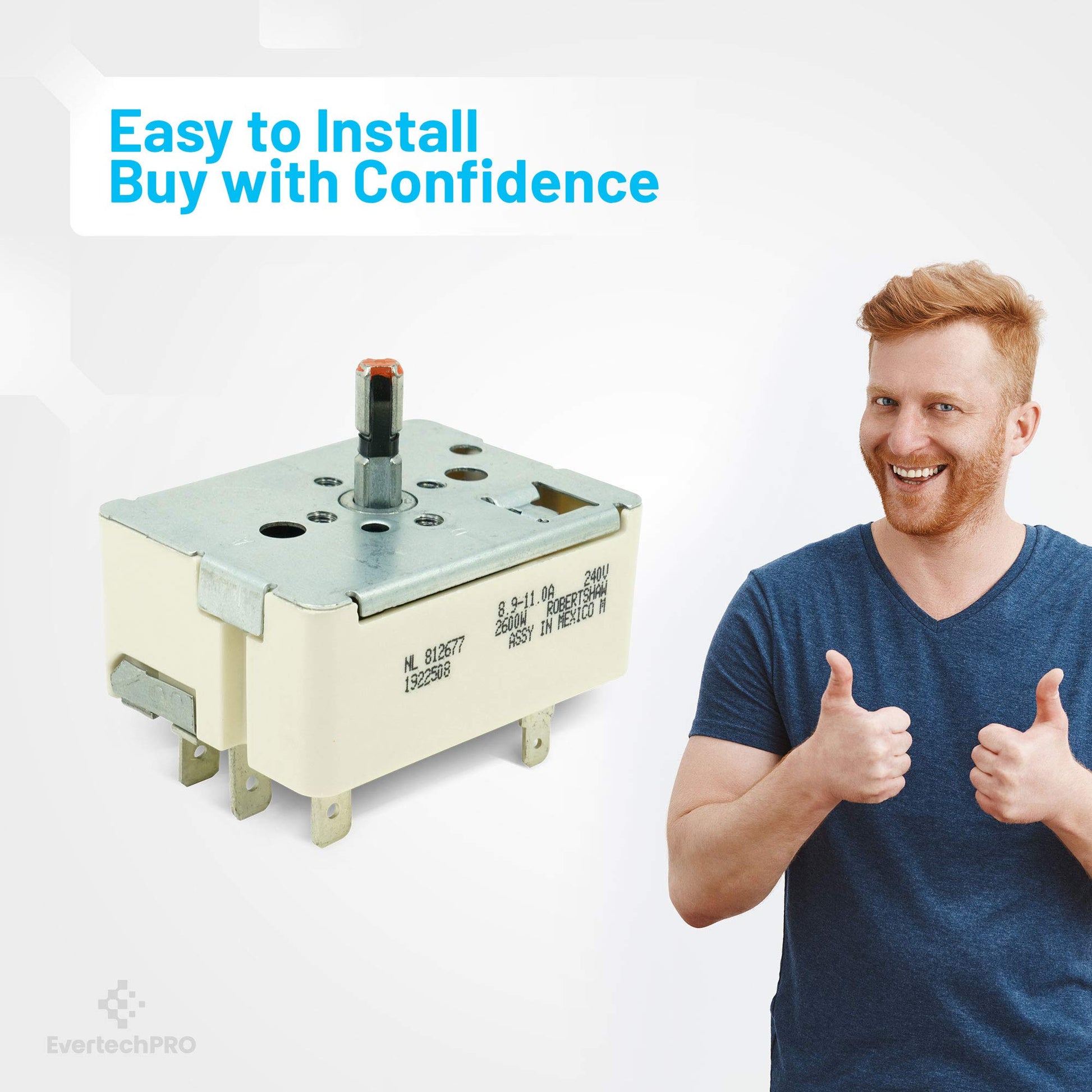 EvertechPRO Range Replacement 8 Inch Infinite Switch Control Part Number WB24T10025 replaces 769692 AH236750 EA236750 PS236750 WB24T10025This is not a GE OEM product. Fits GE Range. Compatible with 154510 155910...