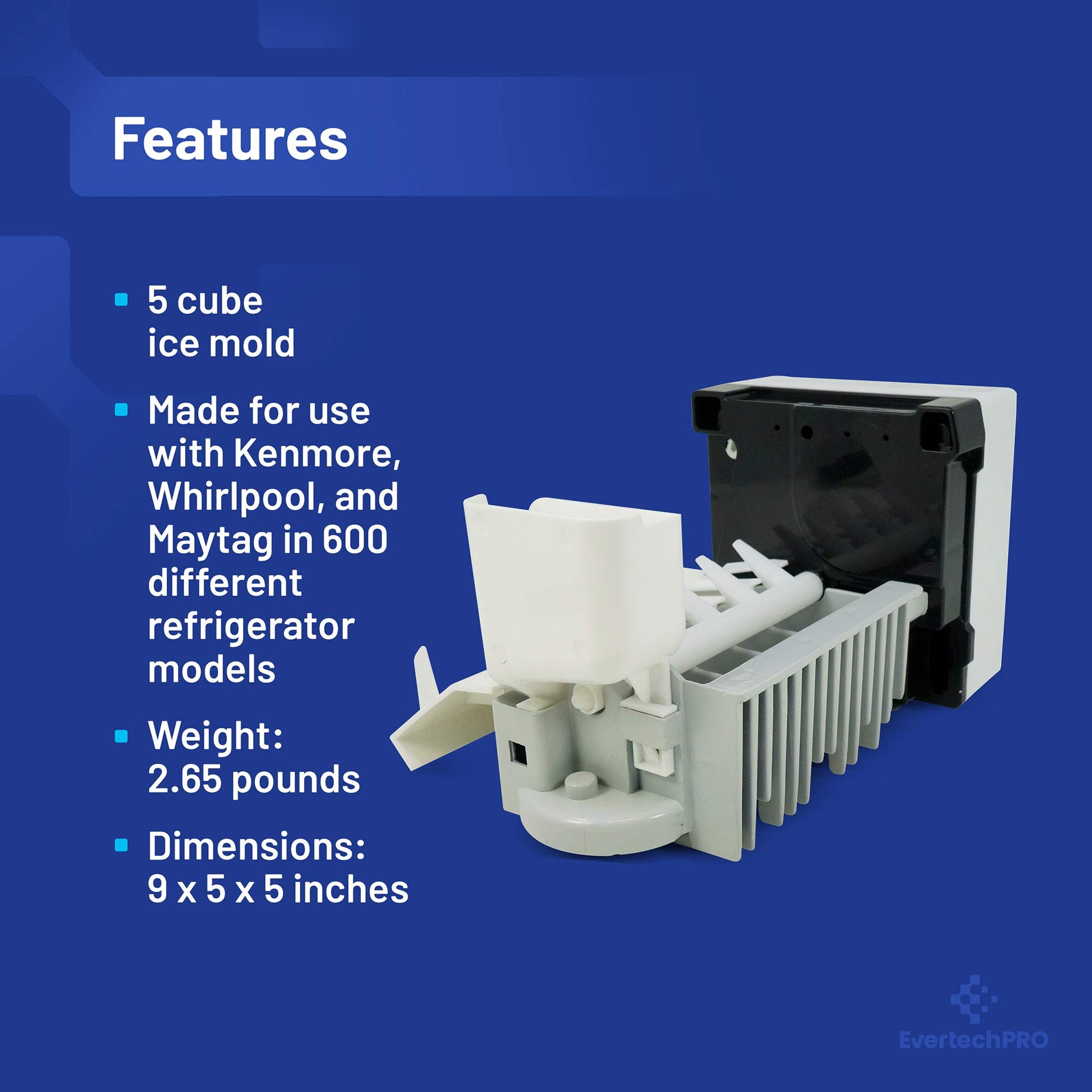 ❖ EvertechPRO Refrigerator Replacement Icemaker Part Number W10190961 replaces 2212352 W10122503 1468991 2212353 AH2341898 EA2341898 PS2341898 TJW10190961