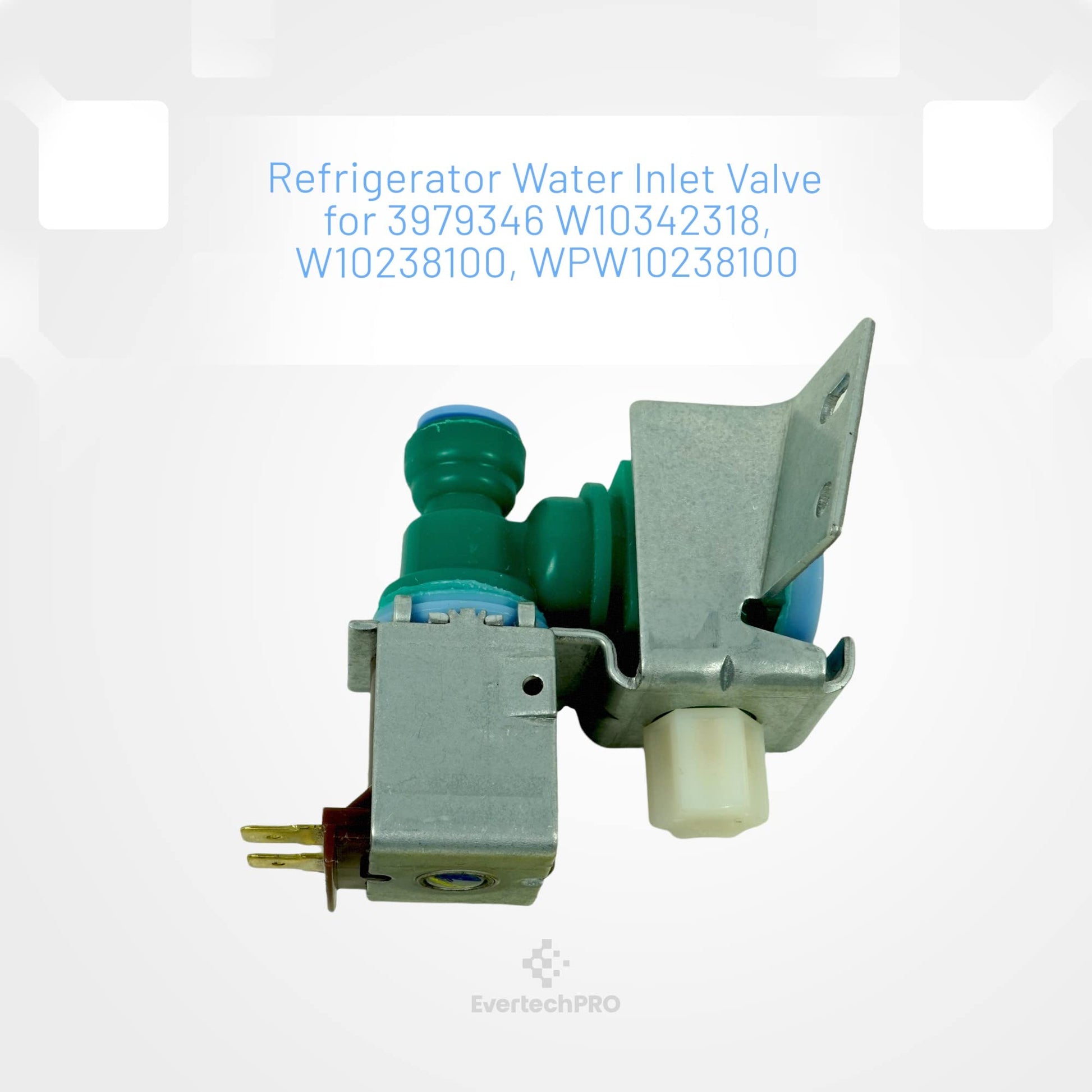 ❖ EvertechPRO Refrigerator Replacement Valve-Inlt Part Number W10238100 replaces 1872938 AH2579779 EA2579779 PS2579779 ❖ Durable Premium Valve-Inlt is a Functional Equivalent to OEM Specifications. Brand New in Original Retail Packaging ❖ Replacement part number: W10238100 Fits For Most Top Brand Refrigerators