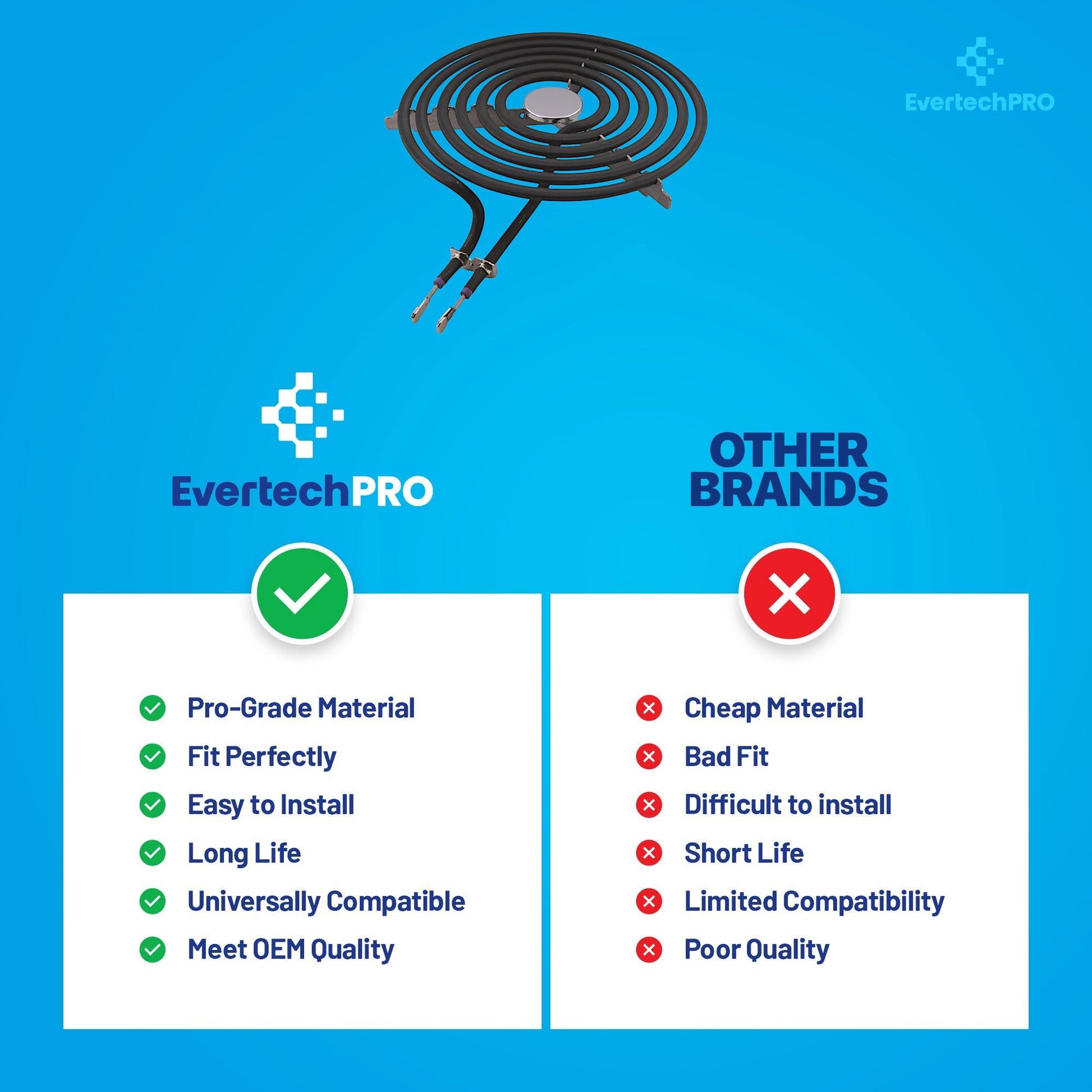 Upgrade your cooking experience with the EvertechPRO WB30M2 Range 8" Large Surface Burner Element Coil Replacement. This high-quality coil is designed to replace various part numbers for G.E. electric stove ranges, ensuring a perfect fit and reliable performance. Compatible with numerous models, this burner element coil is a must-have for anyone looking to revive their aging stove or replace a faulty component. With its 6 turns and 8-inch diameter, it provides ample heating surface for efficient cooking. Durable and long-lasting, this replacement coil will enhance your culinary adventures for years to come. Restore the functionality of your stove and enjoy hassle-free cooking with the EvertechPRO WB30M2 Range Burner Element Coil.