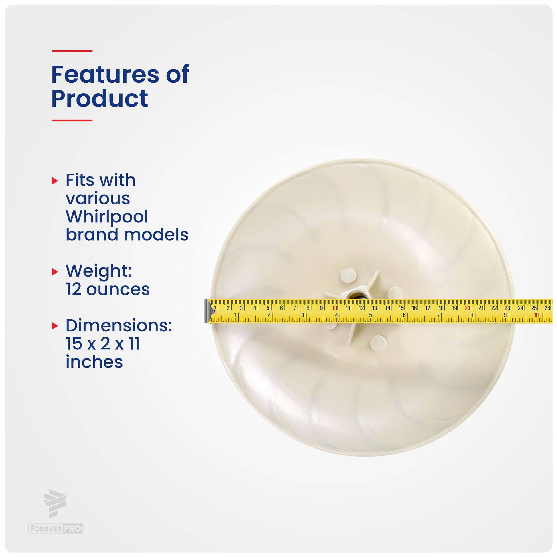 Fits Whirlpool Dryer. Whirlpool WP694089 Dryer Blower Wheel 694089 279711 279500 299678 This is not a Whirlpool OEM product. Use of the Manufacturers trade names and logos are the registered trademarks of their respective owners. Any use of the Manufacturers brand name, part numbers or model designation for this product is made solely for purposes of demonstrating and for identification compatibility and are displayed for descriptive purposes only. Use of them does not associated with, imply any affiliation or endorsement by any manufacturer.