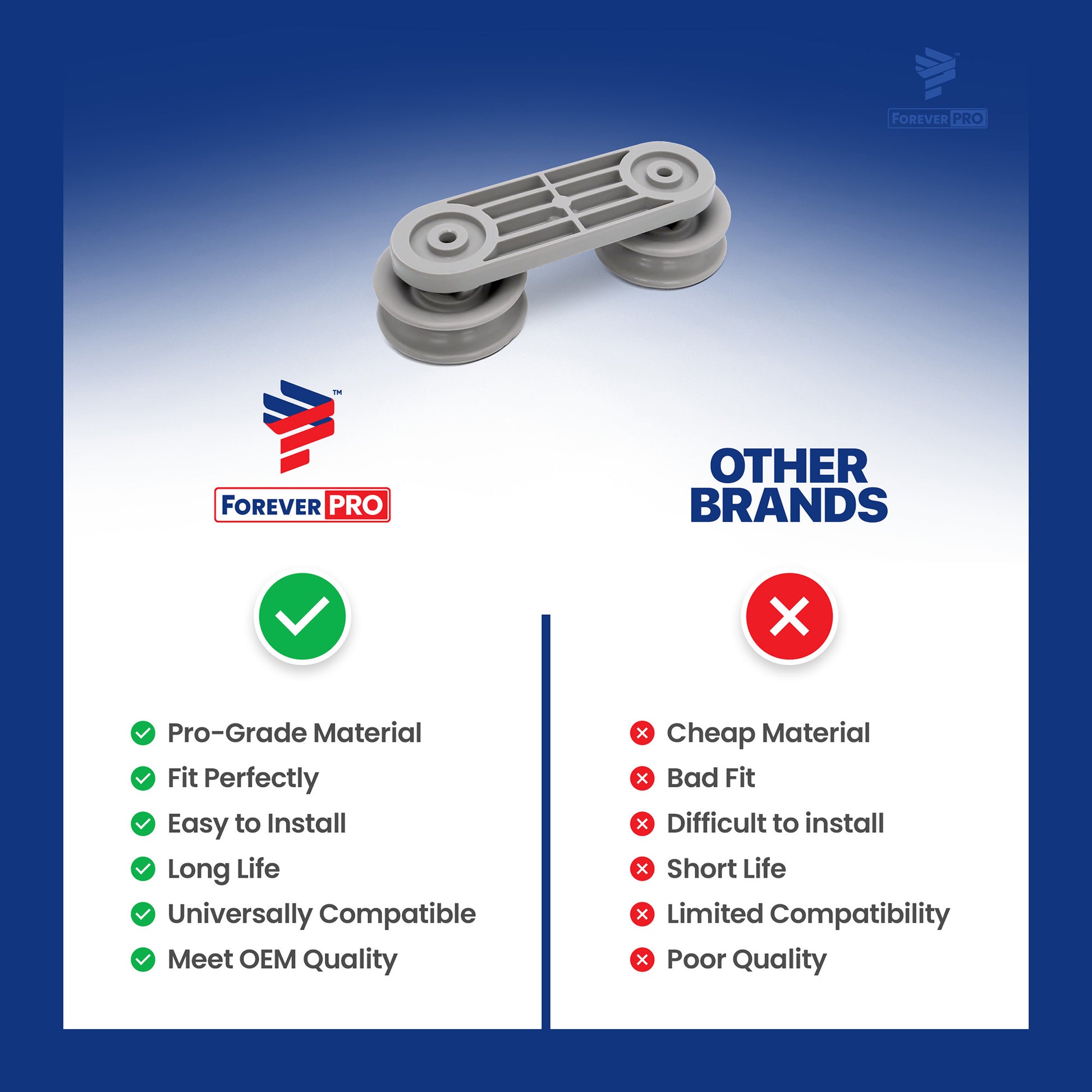 ForeverPRO Dishwasher Dishrack Roller And Axle Part Number WP8270019 replaces 8270019 830966 AH393265 EA393265 PS393265