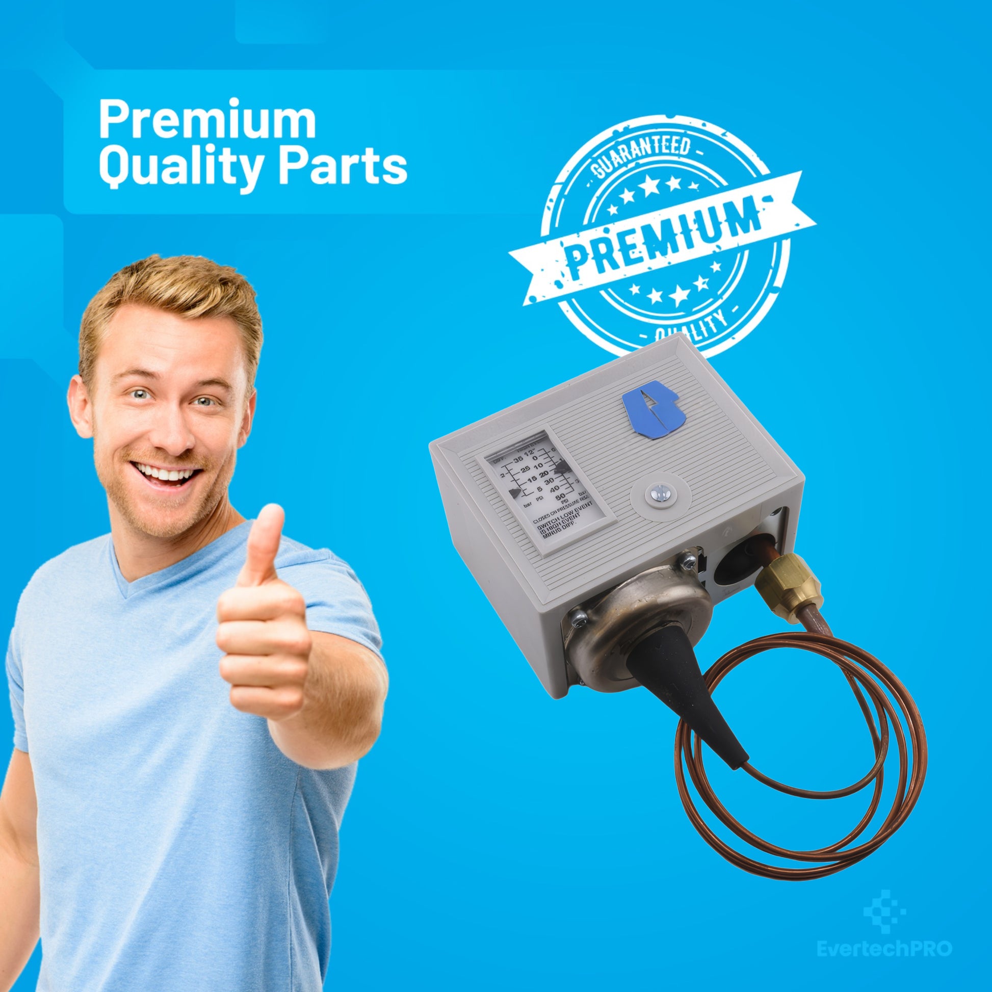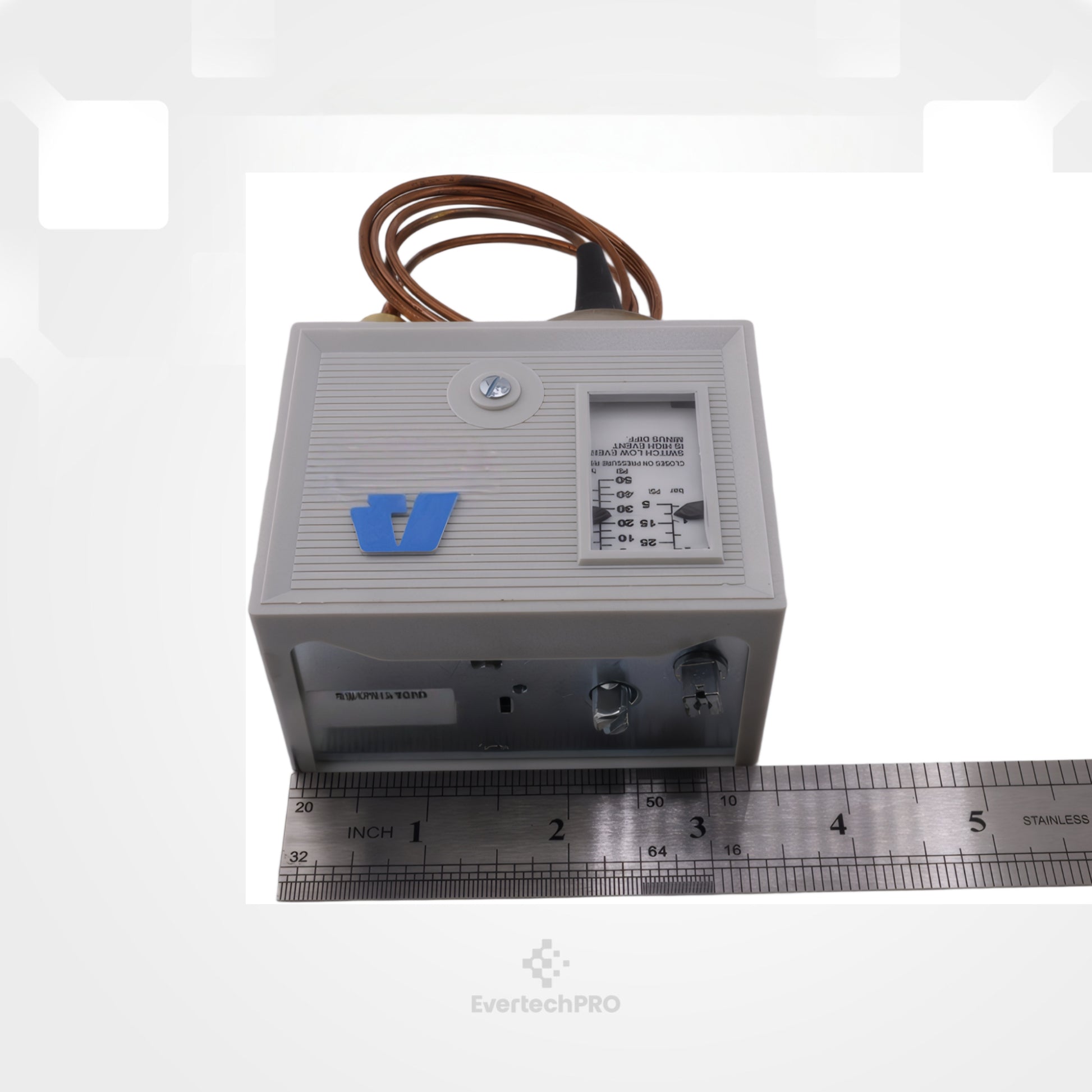 The 206-00232-002 Low Pressure Control Switch is a highly reliable solution for refrigeration systems and cold storage applications. It features a pressure range of 12" Hg to 50 PSI (0.4–3.5 bar) with an adjustable differential of 5–35 PSI (0.3–2.4 bar), ensuring precise and safe operation. The SPST switch opens on low pressure and includes an automatic reset for convenient, worry-free functionality. Its 36" (0.9 m) capillary allows flexible installation, and the IP44 protection rating safeguards against dust and moisture. This low pressure control is compatible with a wide array of competitor part numbers, making it an ideal replacement for many popular refrigeration and cold storage systems. Compatible part numbers include: Addison: 8401-101, 8401-70, 8401-72 Ajax: 21118, 569, 57000 Alco Food Prep.: 351-6044 Automatic Canteen: L2-8785 Bastian Blessings: 209-05-006 Beverage-Air Co.: 502-117A Blissfield Mfg. Co.: 84005 Bohn Heat Transfer: 5704L Borg-Warner (York): 25-4327PX, 25-4331P, 25-7610PL, O24-23249-00 Bristol: 650201 Carrier/Air Cond. Co.: HK02RB-005 Choice Vend: 800779 Columbus Showcase: P0768-01 Continental Vend Mch: 13C-91003 Control Data Corp.: 52922000 Copeland: 085-0098-15, 085-0098-21 Council Mfg. Corp.: 320 Crescent Metal: 857-4 Danfos*: 060-1101, 60-2063 Davmor Industries: 14097 Delfield (Alco Food): 3516044 Dunham Bush: CNT-38 Fogel Refrigeration: CT-1 Friedrich Grp-Wylan: 700-077-00 G.E. (General Electric): M4B472 Gemline: PT1001 Grindmaster: W0650414 H.C. Duke & Sons Inc: 65-01 Heat Exchangers Inc.: 066A097 Hill Refrigeration: PP-1223-G Hobart Corp: 13-04-05, 13-04-06, 24905, 271235 Honeywell: P420B Hupp Typhoon A/C: 1456-716 Hussman: 21105D, 37021 Invensys Climate Controls: O10-1402-070 ITT/General Control: L-59P148 Janitrol (Goodman): 92B81 Johnson Controls: P270AB-12, P70AA-105, P70AA-123, P70AA-133, P70AA-47, P70AB-12, P70AB-12C, P70AB-29, P70AB-34, P70AB-40, P70AB-41, P70AB-44, P70AC-9, P70AN-2 Johnstone Supply: B10-514 Katolight: 46013 Kelvinator: 1155097, 23-0078 La Crosse: 48, 94650 Lennox Industries: 3.60E+96, P-8-2321 Liquid Carbonic Corp: 131511 Longwood Ind.: 120295 Manitowac Equip.: 14187, 23-5089-1 Market Forge: Oct-99 Maysteel Products: 10559-CF Mccalls Refrig.: 10/1/1934, 10/1/1935, P-1889 McCray Refrig. Co.: 1453, 1462, 620553 McQuay: 12359 Mec-O-Matic: 80-11191 Melchoir/Arm/Dessau: 2001694 Mile High Equip.: 300285 Mills Indust.: BD-4608, CO-1610, CO-1686, CO-2732, CO-3753, CO-3755, CO-3790 Progressive Corp.: 1325-104