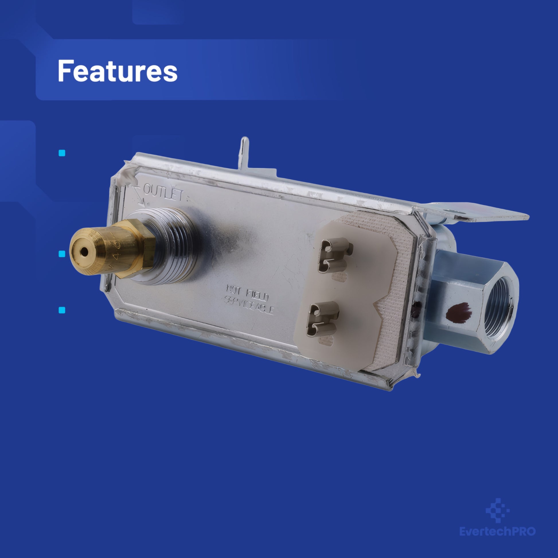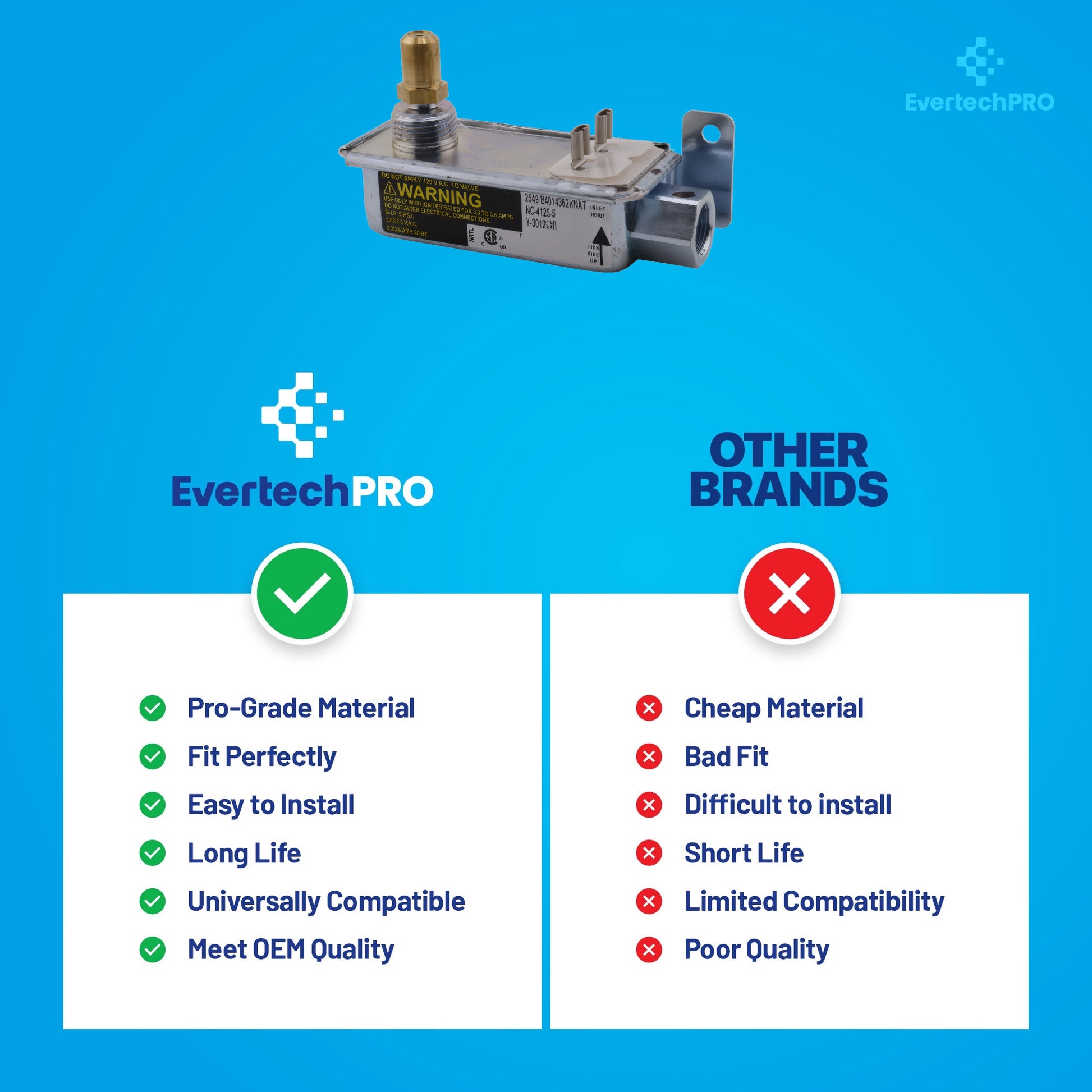 EVERTECHPRO WB19K31 Gas Safety Valve: stops your GE oven from 'clicking forever' or smelling like rotten eggs. Runs on 120 volts, glow-bar only — no sparks, no fire risk. Handles five burners worth of gas, still super quiet. Brass body, no cheap zinc leaks. Twist it in from the back: one hose, two wires, four screws — and boom, preheat in eight minutes again. Fits every model your old one fit — check your door sticker for WB19K31 or 183D5746G001 and you're golden. Made in a real factory.