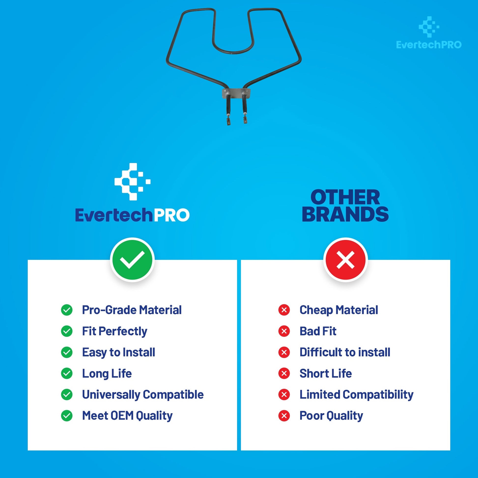 The EvertechPRO WB44K5013 Oven Bake Element is a high-quality replacement engineered to restore reliable lower-oven heating in compatible GE wall ovens. If your oven is not heating properly, cooking unevenly, or failing to reach temperature, a worn bake element is often the cause. This replacement element is manufactured from premium, high-temperature resistant materials to deliver OEM-level performance, even heat distribution, and long service life. It directly replaces part numbers WB44K5013 and 344894, ensuring proper fit and straightforward installation. EvertechPRO replacement parts are tested for durability, wattage accuracy, and consistent heating—making them a dependable solution for both professional repairs and DIY maintenance.